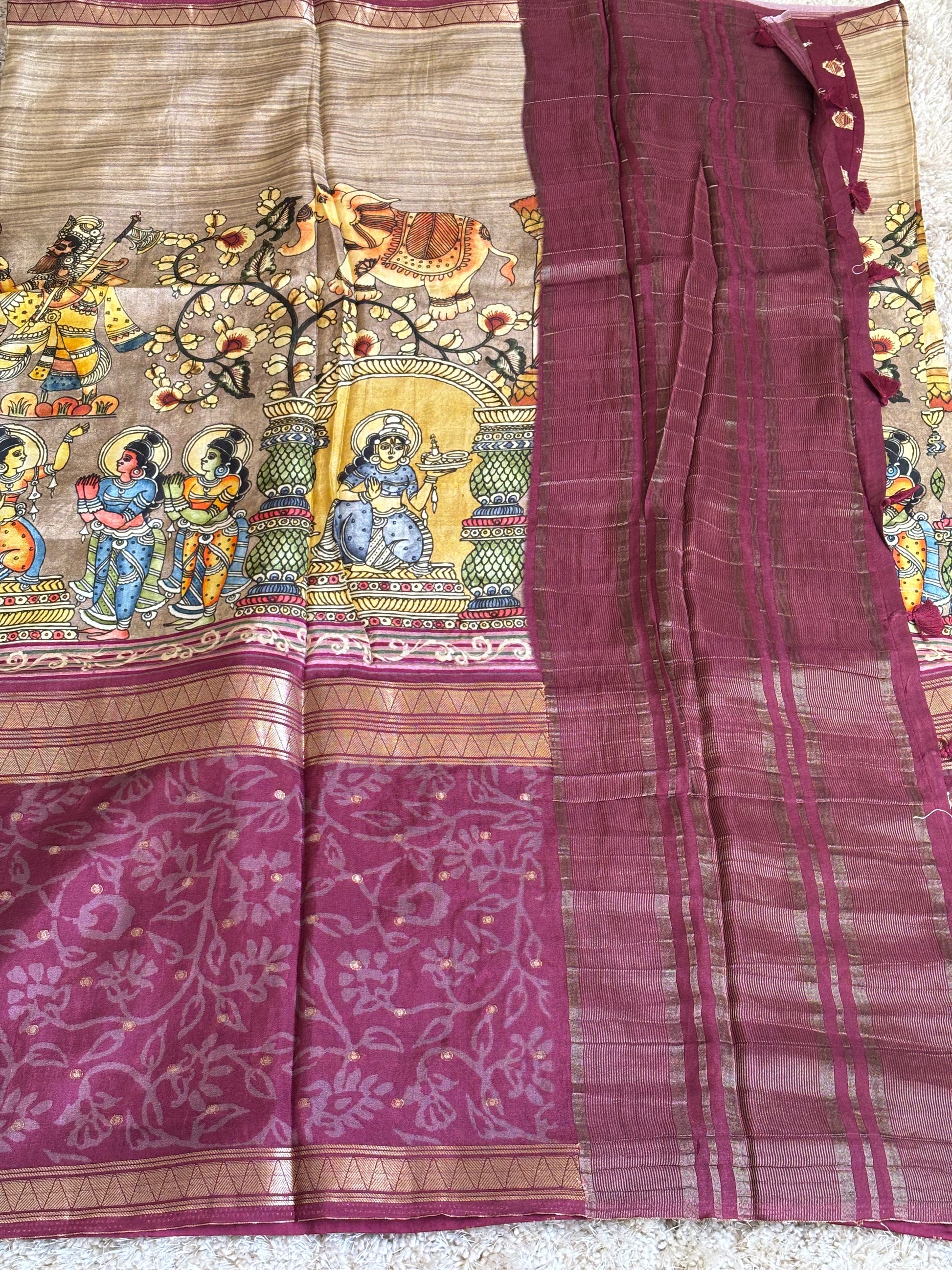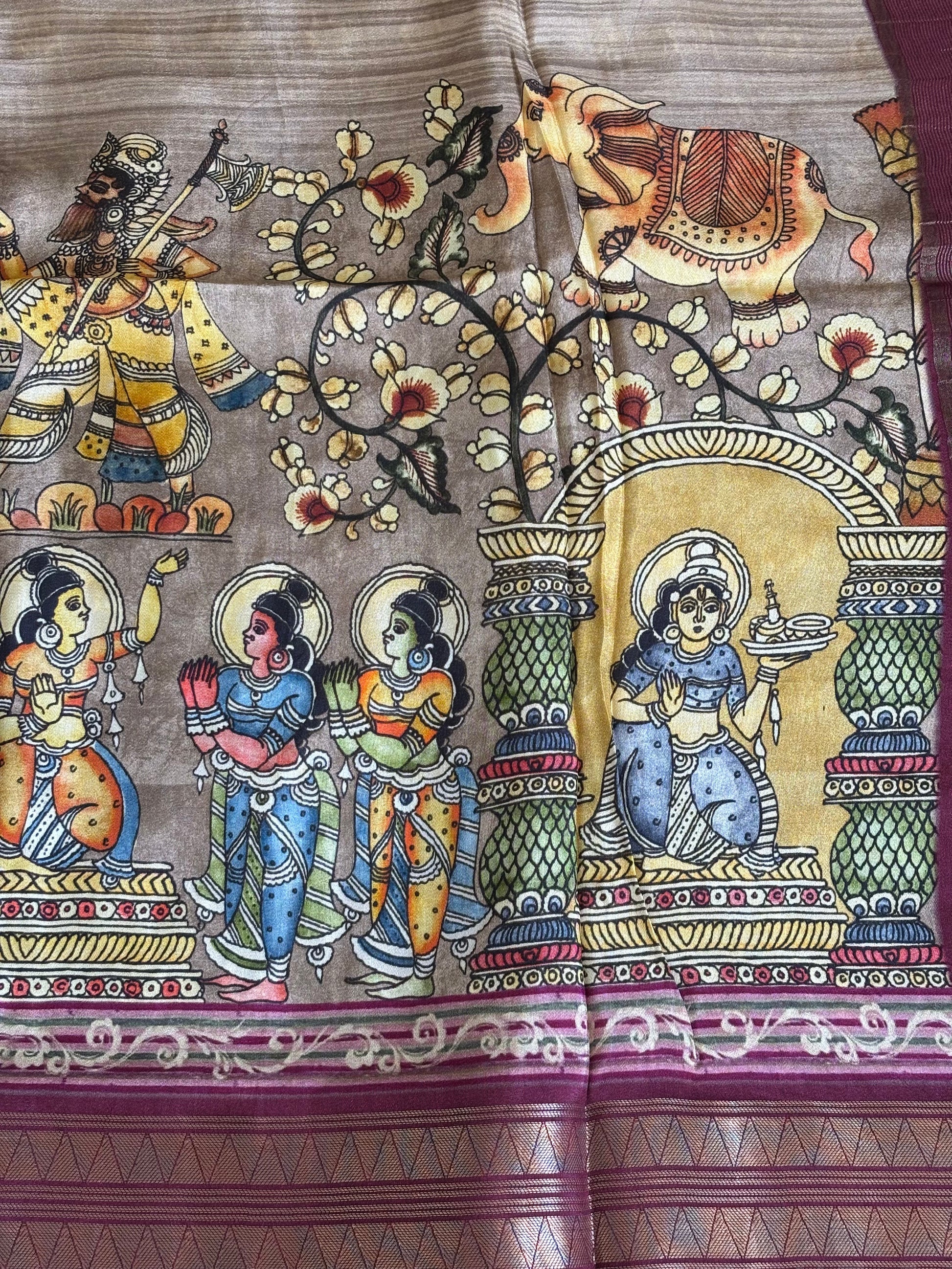Digital Print Crepe Silk : Maroon & Beige - TN092