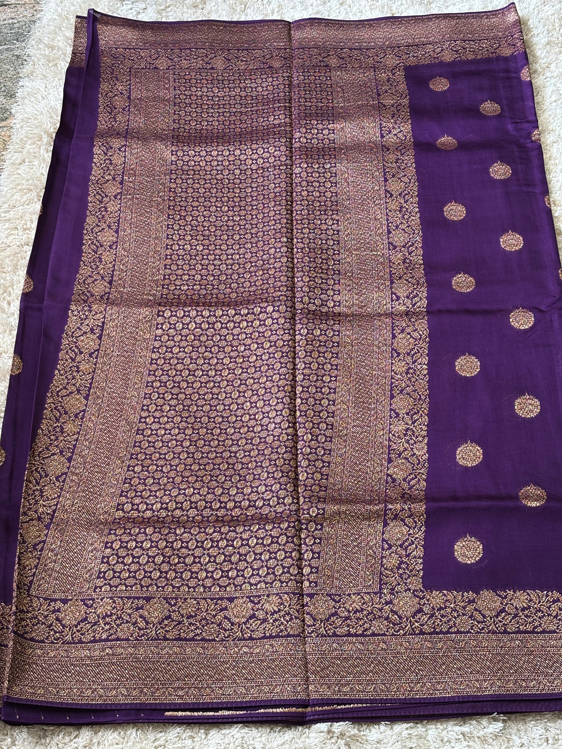 Banaras tissue saree in stunning Violet — perfect for festive and wedding looks.